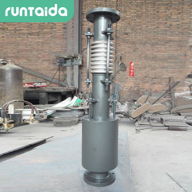 軸向復(fù)式波紋補(bǔ)償器由兩個(gè)或多個(gè)波紋管串聯(lián)在一起,在波紋管外有能夠保證波紋管在軸向移動(dòng)時(shí)不致失穩(wěn)的外罩。這種膨脹節(jié)可吸收較大的軸向位移。對(duì)于這類波數(shù)較多的膨脹節(jié)而言,外罩即是一種保護(hù)裝置以保證膨脹節(jié)在運(yùn)輸或安裝過程中不損壞波紋管。而且,又保證了膨脹節(jié)工作時(shí)的穩(wěn)定性,也是由于外罩的存在,對(duì)于膨脹節(jié)的保溫操作也變得簡單易行。